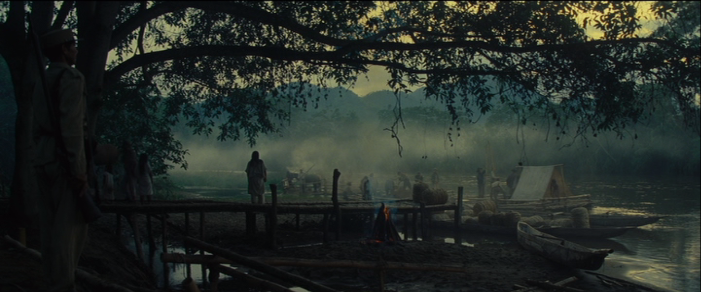 What makes The Lost City of Z is first and foremost Darius Khondji’s photography. Not every choice works for me—I’ve never really cared for the 75% Barry Lyndon interiors treatment that so much of the early part of the movie uses—but then you get into the jungle and the world is haze. There is a yellowish gloam that hangs over the world when people are muddling their way through the Amazon, one reminiscent of the “yellow fog that rubs its back upon the window-panes/The yellow smoke that rubs its muzzle on the window-panes” from “The Love Song of J. Alfred Prufrock.” It is precisely that color, and like the fog in “Prufrock” it is not necessarily an aggressive one. It is possessive, though, and that possession, the fact that the Amazon is entirely in control and not the white men hacking through it, is key to The Lost City of Z. Fawcett is at first reluctant to go to the Amazon despite his surveying experience; he doubts that there will be enough action to put medals on his chest or bring him to the forefront of pleasant British society. But once he is there it is clear that he will always stay there. He is warned as much by Tadjui (Pedro Coello), an Indian he persuades to guide him up the river. “I feel sorry for you, English,” Tadjui says. “Soon, I am free. For the Espanol and you, there is no escape from the jungle: only death.” It turns out that Tadjui is right on a literal level, for Fawcett will presumably die in the Amazon. He’s right on the figurative level too; there’s no escape for him once he goes. He gets hooked on it the way that men in later parts of the 20th Century will get hooked on climbing tall mountains or flying fast airplanes. Here is where the photography shines through, however: the Amazon is just England, but with a more powerful hit. Here’s the Amazon.