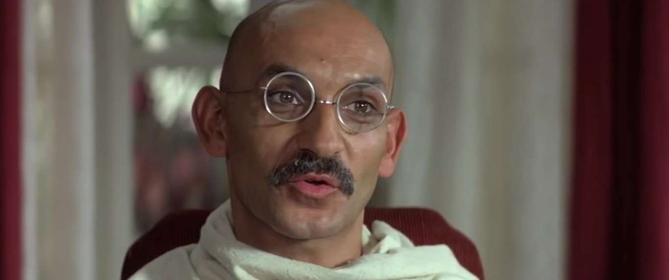 Gandhi does not make for particularly good history. (If I’ve said it once, I’ve said it a million times: if you want history, read a frickin’ book instead of relying on the movies to teach you something.) What it is, and this is no small feat over a running time of better than three hours, is deeply compelling. The best scenes in the movie are not primarily about Gandhi, though Ben Kingsley is of course masterful in this role. They are scenes which highlight the key moments in the long, arduous fight of Indian independence, scenes which depict the immense cruelty of imperialism and the inescapable evils therein. The massacre at Amritsar and especially the protest at the Dharasana salt works are painful, heartbreaking scenes which emphasize that beyond the peacenik philosophy that can be expressed in a movie like this, there is a reason for Gandhi to call for independence at all. Gandhi also places the credit for Indian independence pretty squarely on Indians rather than finding some glib way to nod to the crown or the British government or something like that. In one scene, Gandhi tells a dear friend to leave India and take another job so it will not appear to the outside world that white people must shepherd the cause. As gentle as the movie makes him, it does not shy away from scenes which emphasize the difficult, perhaps even unkind impulses of the man. So firmly does he place principle before people that he literally shoves his wife out the door when she refuses to take on an onerous task at a commune, or alternately faces real physical pain in order to continue making what are really only symbolic protests. In Gandhi, the title character believes firmly in the gesture as much as he does practicality, and that sort of idealism is appealing enough to make us take notice over a period of decades.