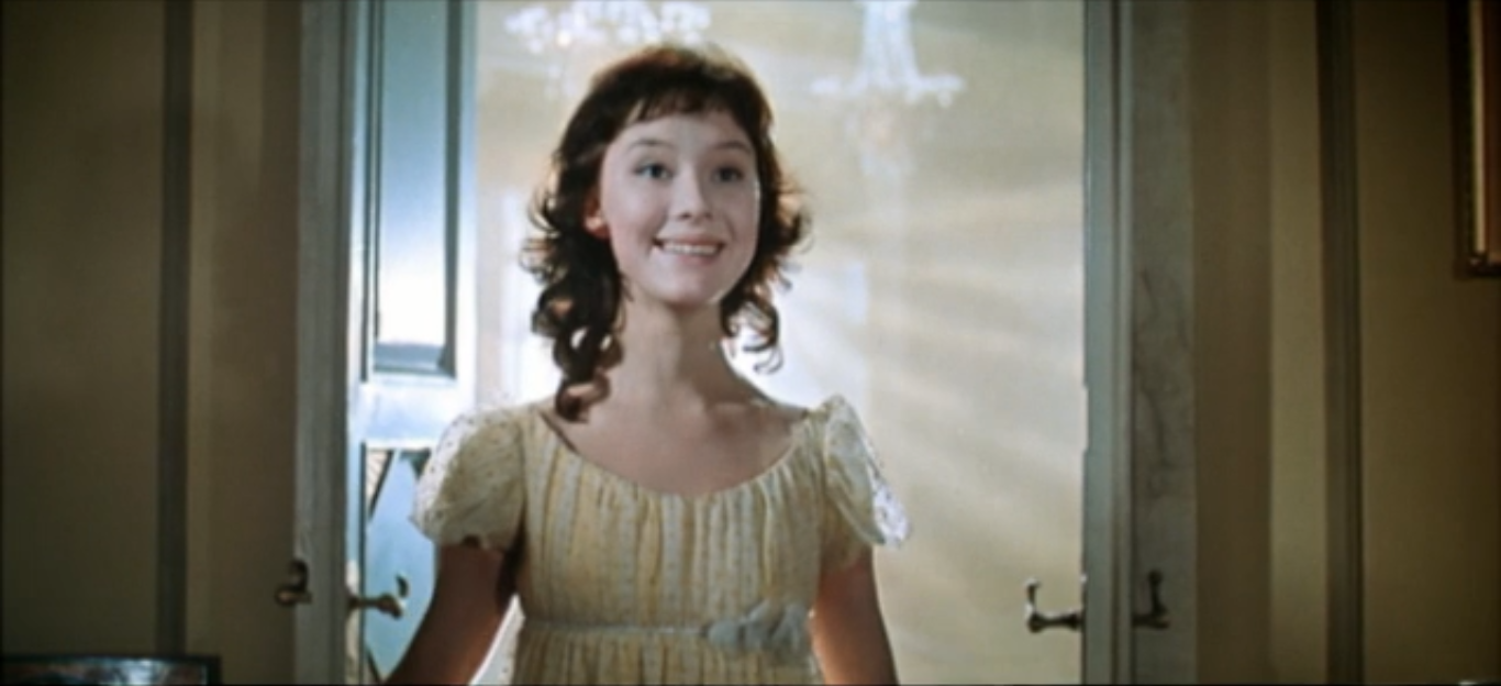 - The casting of Ludmila Savelyeva is probably the most important bit in the entire film, because, as noted above, Natasha has the greatest power of any major character to change others or bring out different sides to them. May I be struck down if I ever turn into one of those “But the character is like this in the book” people or worse, “But I imagined the character like this…”, but it’s worth noting that the most important aspect of Natasha’s physical appearance in the novel is her energy. She is not conventionally beautiful—that distinction is left to someone like Helene—but her constant energy and freshness give her a kind of beauty in their own way. Savelyeva is not a great beauty, but there’s no doubt in my mind that she is a better choice for Natasha than, ah, Audrey Hepburn. Even in movies like Roman Holiday or Sabrina, Hepburn was more leonine than sprightly. Savelyeva is far less pretty than Hepburn, but she is also capable of the combustible energy that Hepburn was always much too cool to lean into.