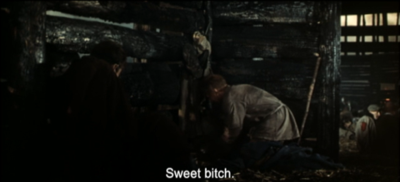 - I’ve talked up Tikhonov and Savelyeva’s acting here already, but Bondarchuk has, up until this last ninety minutes or so of the movie, been sort of one-note. He does not have the world’s most expressive face, and many of his gestures and reactions fall into the same catalogue. He is not Tikhonov, whose character calls for a granite mien and the softest of smiles to crack it; Pierre requires more than the shell of a man we see in the first three sections. Bondarchuk finally begins to deliver here, giving us a Pierre whose idealism, education, brute strength, and crippling empathy all come together at key moments, such as the execution of the arsonists, the death of Platon, or the conflagration of Moscow itself. Perhaps it is because we lack another’s eyes to see such terrible scenes through, and that probably has as much to do with it as anything else. But if nothing else, Bondarchuk is an efficient conduit, and that’s certainly worth praise.