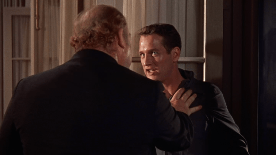 - There may not be a Hollywood icon I understand the appeal of less than Paul Newman. I’ve tried! I have tried really hard. I have seen The Sting, Butch Cassidy and the Sundance Kid, The Verdict, The Hustler, Cool Hand Luke, Cat on a Hot Tin Roof. (I haven’t seen Hud. Reading Pauline Kael on Hud makes me wonder if that could be the movie that turns me around on Newman, and I guess that’s just a lot of pressure to put on that flick.) In every one of those movies excepting The Sting, someone else interests me significantly more, and that someone is usually the person Newman is playing against. Not to go through the whole roll call here, but George Kennedy is way more interesting than Paul Newman in Cool Hand Luke. Jackie Gleason is curiously spellbinding in The Hustler. Cat on a Hot Tin Roof has Burl Ives in a good part. Either Paul Newman is a star who expresses that skill by becoming the greatest elevator of chubby guys in supporting roles in the history of American cinema, or the laconic on-screen presence is just dull. Certainly he has the greatest eyes in said history, but you don’t buy a Lexus because it has LED headlights. In Cat on a Hot Tin Roof, Paul Newman is much less cool than he is in the average Paul Newman movie. Even though there is an awful lot of time spent in the Newman canon on washouts and ne’er-do-wells, Brick is a particularly promising member of the club. Newman acts him as coolly and distantly as ever, and in an early scene where I think there’s meant to be some mystique built between Brick and Maggie (Taylor), Taylor blows him off the screen. In later scenes, Newman spends a lot of time in an apartment, the rain, and a crowded cellar with Burl Ives. Ives is reflective, varied. Newman breaks things, yells, and can’t quite choke out lines about familial love convincingly.