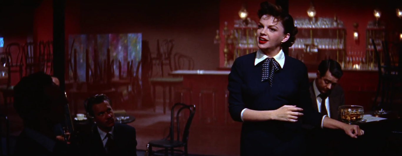 A Star Is Born stands as a sort of caduceus, a mere movie entwined by the serpents “joyous star vehicle” and “anthropological document.” On one hand, this is Judy Garland’s last stand. “The Man That Got Away” is a better song and a more intimate performance than the film’s answer to the ballet from An American in Paris, “Born in a Trunk.” (In one later scene, Garland does An American in Paris without the sets, which is as much a minimalist rejoinder to that fad as anything else.) “Born in a Trunk,” for its part, gives Garland ample opportunity to belt the name of the town most suited for belting in the English language: Pocatello, Idaho. Nothing sounds as good loud as /o/ and /Ə/ do; no one sounds as good doing it as Judy Garland. Esther Blodgett (Garland) becomes Vicki Lester with the same kind of speed that Frances Gumm became Judy Garland, and we are meant to draw a comparison between the two. Perhaps if Frances had been discovered when she was an adult with more experience, she might have turned into the well-adjusted, grateful, and basically stable adult that Vicki is. As it was, Frances was discovered far earlier, is to this day a standard-bearer for unreliable actors, and died from an overdose at forty-seven.