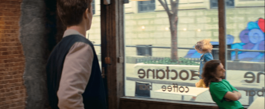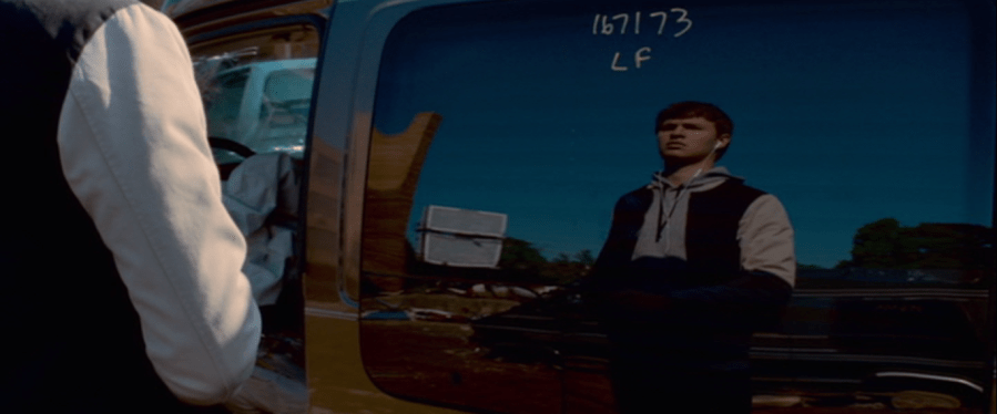 In moments of self-reflection, the hearts of both boys are revealed. For Bambi, looking at himself in a pool, the sight is another entry in a catalog of wonder: who looks back at me, and if it’s me, then how can I be in two places at once? Even though the film spends plenty of time with Bambi as a young adult and ultimately leaves us with the sight of a distant buck next to the previously seen Prince of the Forest, the movie as a whole is most concerned with Bambi as a child. The halfway-to-Lacanian image is further complicated by Faline, who pops her head into the top of the frame and, as those pesky women seem determined to do, punctures the navel-gazing mystery of Bambi’s boyhood. Baby, on the other hand, is older and has just enough experience to prize his own liberty. Now that his indentured servitude to Doc has been paid up, he believes himself free, and in the junkyard where a car has had to be squashed he pops on “I’m Easy” and swings around the junkyard. It’s one of the few songs in the film which does not lend itself to the music video editing where downbeats punctuate actions on the screen. When he waits for others to complete a robbery, he bounces back and forth to the rhythm of the windshield wipers. When he walks down the street to pick up a coffee order, the words of the songs he’s listening to appear on the sidewalk or the surrounding walls. But with “I’m Easy,” he sways and moves freely. It’s a dance, not a regimen.