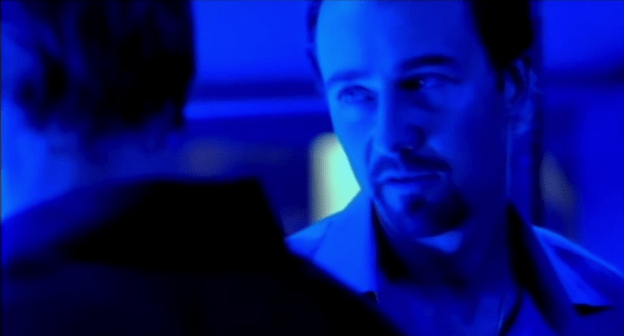 25th Hour is a slow movie accentuated with the excessive editing we frequently find in Spike Lee’s movies; one wishes that he and Barry Alexander Brown would let the actors work without splicing a slightly different angle at multiple points during a conversation where the speakers stand still. (There are some aggressive lighting choices in blue and red in 25th Hour, and for the most part these work pretty well. I really liked the scathing blue light on our principals before they get into a club; it’s like one of those UV lights people use to see what’s hidden or dried out in a room, and it works the same way on Jake in particular. On the whole, though, this is a movie that draws its effect from characterization rather than camerawork.) The conversation above Ground Zero that Frank and Jake have is almost entirely untouched, which is one of the reasons it’s probably the best scene in the movie. This is Ed Norton at the height of his Hollywood popularity, Philip Seymour Hoffman on the upswing, a slightly post-peak Barry Pepper. Brian Cox and Rosario Dawson are essential as the people closest to Monty, and both of them are just as good as the men in leading roles. Cox is a different man without facial hair, weaker and softer than we’re used to seeing him in other roles; Dawson plays Naturelle with enough slyness that it makes us distrust her when she’s honest, which is the point.