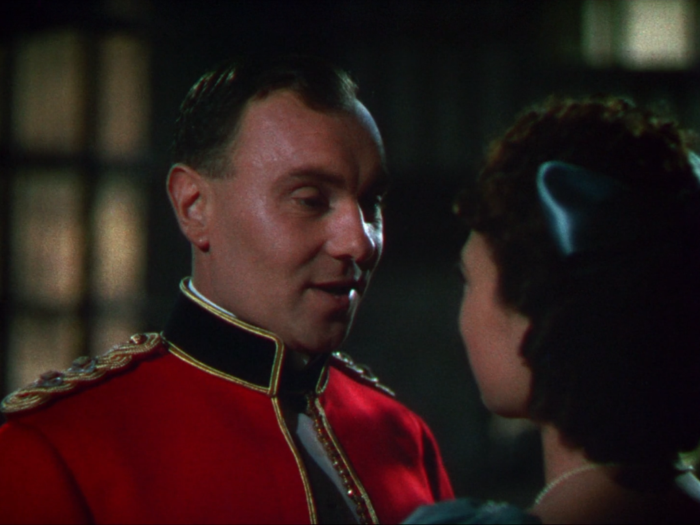 There is a long stretch in The Four Feathers which basically leaves Harry and his moral dilemma, such as it is, behind. When it does it focuses on John Durrance (Richardson), who lost a battle for Ethne’s hand to Harry and who goes gladly to the Sudan while Harry shirks. John is more interesting than Harry, not least because Richardson plays his role with less detachment than Clements does. For a man who is struggling with a crisis of confidence with generational implications (for the Favershams have been officers for more than a century) and a disapproving wife he has separated from, Harry seems terribly cool too often. He may know he’s a coward, but his aggravation is too mild to make us feel much of his turmoil. John stiffens up in moments of crisis and then manages to return to them with a performative grace. When he finds out from Ethne’s brother, Peter (Donald Gray) that Harry’s offer is the one that was accepted, John is the stoic gentleman in his first moments of hurt, confesses a smidgen of his hurt to Peter privately, and then is witty and cordial with Ethne later on. He’s on her dance card for a polka—”rather like saying goodbye in Morse Code”—and tells her that he made a list of reasons why she might have chosen Harry rather than him. But the last was the most important: “She loves the other man.” It’s a moment which is sad and funny all at once, which of course makes it quintessentially Richardson. Not every scene of his is wonderful. Even he can’t save the scene where the sun makes him go vaguely crazy. (I think he’s going crazy? I mean, I get that he’s super warm, but he’s staggering around like someone trying to show us “two gins too many” as opposed to “verge of death.”) But Richardson is particularly fine once he’s realized that he’s gone blind. It’s Ethne all over again. He is crushed but cannot show it; he rides his horse, all but hides his blindness from Peter, tries to rally his men against a superior force. Richardson gamely runs into lamps and canvas, but more than that wears two different faces. In front of others, he uses his genuine fatigue as a way to mask his condition. Alone, his hopelessness is all too clear, lit by the matches he cannot see or the lamp that he’s just banged his entire head against. In a movie that emphasizes the despair of its characters, or at least tries to, Ralph Richardson is the most valuable tool The Four Feathers has to accomplish it, and his John Durrance is far and away the most sympathetic individual.