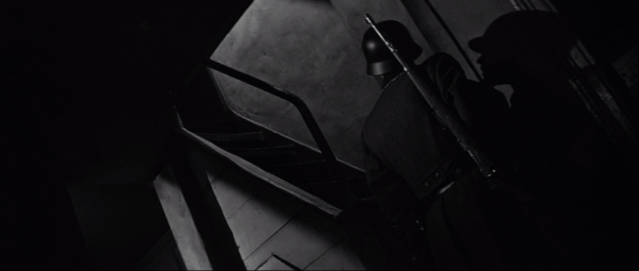 Maybe this is an overstatement, but I’m not sure another movie I watched this year combined, in a single sequence, utter terror and total silliness. But that’s exactly what happens in the most famous chapter from The Diary of Anne Frank, when the Nazis, brought to the office below the Secret Annex because of a thief, ascend the stairs. One, in a very literal Dutch angle, takes his flashlight and goes searching. The light pours in through the cracks of the bookshelf-door. It illuminates the faces of Anne and Peter, who will be the first to be taken if the soldier finds them. Meanwhile, a cat finds some food in a funnel, sticking his entire face into it to lick out the scraps; there’s barely enough food for the people there. By now another Nazi has shown up. The cat finds the better part of a sandwich, chows down on it, and the residents of the Secret Annex are now no longer focusing on the Nazis but are looking stage right to the cat, who knocks the dish into the sink, mews, and jumps down. It seems like it ought to be curtains for them—an indisputable noise from a place where there should be no people. But the Nazis look at each other and laugh; it’s a cat, they say, and return to where they came from. It’s a very cute cat doing very meme things while lives hang by the thinnest thread. This is the scene I think of first for George Stevens. There’s a man in there like the one who made The More the Merrier and then rushed off to war, who knew how to make us laugh, but there’s also the man who filmed Dachau firsthand and knew that the world couldn’t be that lighthearted ever again.
