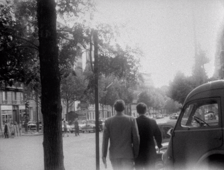 His world is terrifically small. He eats at the same cafeteria every day, grants himself the same amount of time for meals, studies constantly (though Rohmer is wise enough not to make us watch him do it), promenades in the same little corner. The film begins with the place, not the people, and it shows the boundaries this student’s territory bounces up against, which are mental as much as physical. Like Jean-Louis Trintignant in My Night at Maud’s or Patrick Bauchau in La collectionneuse, Schroeder in Bakery Girl has convinced himself that obsession is a sign of urbanity or superiority. What it is, really, is a lack of perspective, and so we are a little amazed at the fact that he’s so wound up about the thought of Sylvie that he passes up mealtime in order to look for her on the busy sidewalks. Rohmer is masterful in this sequence; on the occasion he shows us, our protagonist tires of looking and wanders into the market. With his face visible to us, he buys cherries, is swept up in the heat and life of the other people, the ripeness of summer fruit. Then he takes his bag and continues walking away from the camera, tossing stones into the street, as much on the prowl as ever.