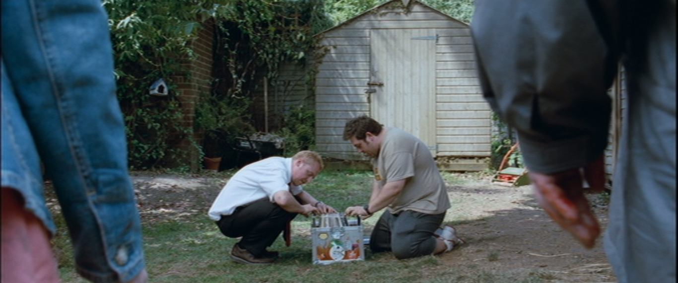 The phrase “there’s something for everyone” in a movie ought to give us pause, for too often that implies an anonymous husk of a picture. Not so in Shaun of the Dead. There is something for everyone in this movie, which one can watched multiple times in a week without losing any of the joy of it. I know. I’ve done it. Each of those somethings comes with a little twist on it, courtesy of Wright and Simon Pegg, which makes the movie feel as fresh as those zombies are not. Zombies as social critique? Sure thing, but this time they end up being a great way to price out the working-class. A schlub turns a quirky situation into the way to win over a lovely lady’s heart? Rarely does the male lead in a romantic comedy have to prove himself again and again and another time then, please, the way that Shaun has to, and offhand I can’t think of another romcom that needs him to take a spoon stabbing to the side of his head as a relatively minor test to do so. There are bro hangouts and skidding cars and remarkable action sequences and a couple of genuinely freaky moments in there. This is also a movie where the response to “Don’t Stop Me Now” playing in a bar in the final hours of a realistically brief zombie apocalypse is “Kill the Queen!” Running gags abound; choose your favorite, but I’m fond of the dispute over whether or not dogs can look up.