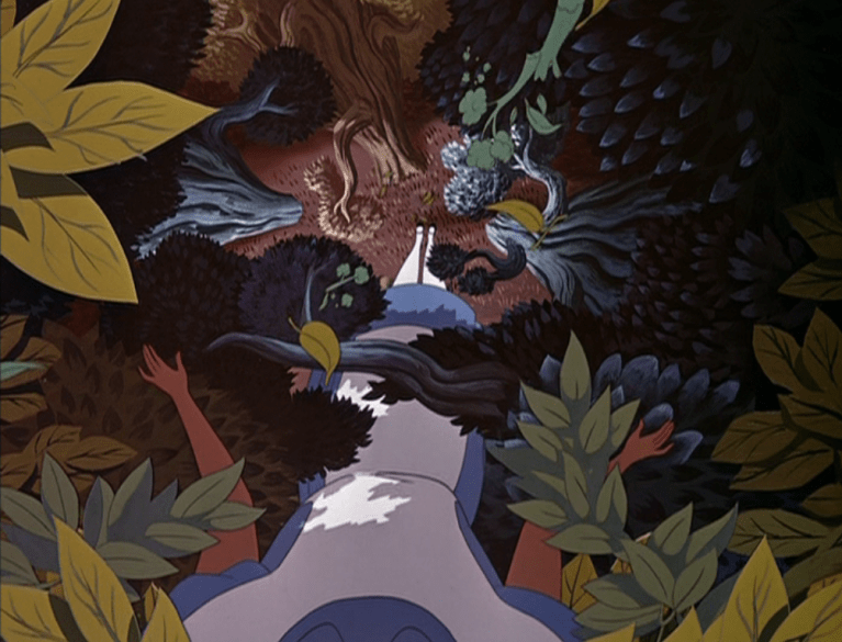 If Alice is here for a reason, it’s sheer trippiness. Sure, it’s not Jodorowsky, but it’s pretty good for a Disney movie produced in the same year as A Place in the Sun and A Streetcar Named Desire. The film knows that what has made the story of Alice exciting for generations of readers is the unpredictability of the story, in which the only thing predictable about it is how strange the next turn will be. It does not shy away from lurid colors, slippery customers, and true weirdness. I’ll always appreciate the way that the animation makes things possible that would be obviously wrong otherwise, like that time when half a cup of tea is poured. Of course, it’s not a normal mug filled halfway, but a teacup sliced in half which manages to hold the tea through some magic. The movie’s characters all join in on that same ethos, like that part of our atmosphere which is filled with argon has been replaced with amphetamines. The boundless exuberance with which the tea party celebrates an unbirthday is almost frightening. The Queen of Hearts, announced with a psychedelic sequence of arranging playing cards, shifts from aggressive elation to murderous anger in an instant. While we’re talking about drugs, the White Rabbit could use a Prozac drip worse than anyone else in Wonderland. There are some dull zones in the movie that no adaptation of Alice that I’ve ever seen is quite able to negotiate—the part where Alice gets stuck in a house because of her accidental gigantism is never all that interesting—but for the most part this is a movie that is so energetic that it can’t help but drag you along.