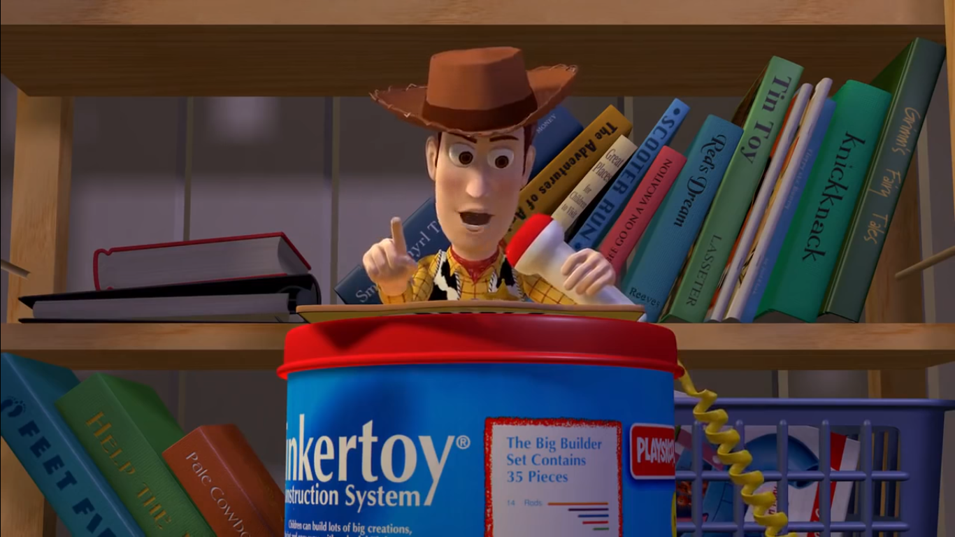 Toy Story is a movie which is concerned with a much more slippery concept than either of those two motifs. Getting older is the sort of thing that people think about constantly, whether it has to do with a receding hairline or realizing that you vividly remember a historical event that someone else wasn’t alive for. Death is the sort of thing that people push aside for as long as they can, but when someone near to us dies we have an awfully hard time thinking about anything else. But irrelevancy is a much trickier idea to pin down. It happens when you don’t get any texts for a few hours and you wonder if any of your friends remember you’re alive. It happens when someone at work is just way better at doing her job than you are at doing yours. It happens when you wander onto social media and see that other people get more attention than you do, or do something greater, or do something wickeder. It happens when you think about how many people there are in the world or how many hydrogen atoms there are in the universe, and you know mathematically that you don’t mean that much at all. Toy Story is about relevancy, which is to say irrelevancy, and it’s about how someone manages to cope with that feeling. All of us have convinced ourselves of our value in one way or another, and the way we do it dictates a great deal about how we choose to live. Woody is no different.