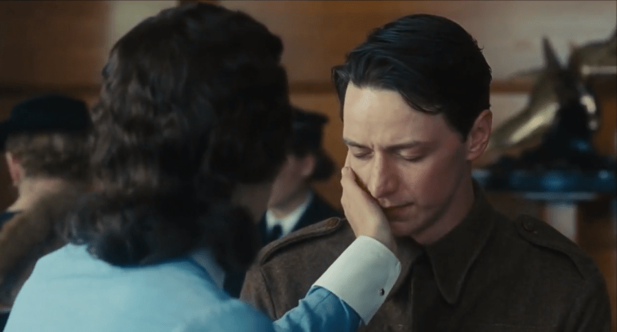 There’s an old story about a man who had everything and who lost it all in a series of tragic events: raids, a tornado, literal fire from heaven. In the end, he is made whole again, given new holdings and livestock and even a new family he lived to see multiple generations of. Job was lucky: God was the one screwing with him, and he did it to make a point to Satan. Robbie Turner was unlucky: a child was the one screwing with him, and she did it out of…a sense of the dramatic moment? “The story can resume,” the letter says in voiceover as Robbie and some other unlucky soldiers traipse through the French countryside. It’s the only real hint we get until those last few moments that we’re watching a fantasy, the deluded belief of an author that she can attempt to mend what she’s done wrong by writing a happier future for two of the wartime dead. “The story can resume,” Briony writes Robbie saying, for Briony has always known where the dramatic high points are, and she writes Robbie as if he’s had a bookmark placed in his life instead of a mortal wound in his abdomen. Yet for as much anger as we must feel towards Briony, as much anger as we watch McAvoy fire at Romola Garai (more on that in a second), those next two sentences are so romantic and moving that it makes me want to die. The parallel structure crests and then ultimately breaks on the cliff of those last three words, which punctuate a lovely but commonplace sentiment. Many of us have found, loved, married. But to live without shame is its own fantasy as grand as reversing septicemia or saving a woman from drowning in a subway tunnel. McAvoy’s reading is part of what must be his high point as an actor. I suppose that’s a little depressing, but it’s hard to imagine him squeezing out a better performance than this one. It’s all here. The focused horror in his eyes as he pulls his head out of the bath. The quiet chuckle as he reads over a note that would be lewd in a 2019 DM, let alone a pre-World War II card. The tremendous anger knotted in his hands and neck as he dresses down Garai. The resigned, awful face he makes as he swirls through the beach at Dunkirk. The way his face tries to hold and then melts, shuddering and heartbroken, when Cecilia touches him in a crowded cafeteria. There are other wonderful actors acting well in this movie, but for as much as we talk about a tiny Saoirse Ronan’s star turn or Keira Knightley’s slim toughness or Benedict Cumberbatch’s creepy performance, McAvoy is the most important.