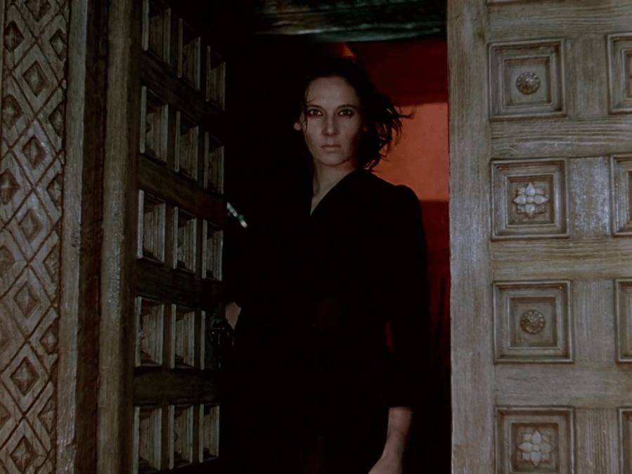 Leonardo DiCaprio (Howard), Cate Blanchett (Kate), Jude Law (Errol), and Adam Scott (Johnny) are all sitting at a table together. Two of them are a little teed off about it, while the other two are too blasted to realize it. Errol asks Howard if he’s really making a Western. Howard pretends not to hear him. Kate asks Howard if he’s making a Western. Howard responds affirmatively and excitedly. “I’m gonna call it The Outlaw,” he tells the table at large. Johnny knows all about it. “You know what it’s about?” he says to Errol. “S-E-X. It’s all about S-E-X.” I like to imagine that somewhere, Michael Powell and Emeric Pressburger had a similar conversation about Black Narcissus before they began filming, because boy, is this film all about S-E-X. No one gets any in this movie, and the collective blue balls that they’re all suffering from is something to behold. Sister Clodagh and Mr. Dean want each other. Sister Ruth would probably settle for just about any man by the time she puts on her lipstick at the end of the movie, but Mr. Dean, who is irresponsibly handsome and vocally dismissive of social niceties, is a hot fudge sundae for a woman who is ready to ditch her diet. Kanchi (we’ll talk about it) spends the movie making eyes at the Young General in a way that makes young men sit up in a cold sweat at night. No one says the word. No one does anything; these are nuns, after all, and even Dean isn’t fool enough to go around actively seducing the nuns. But the clues are there. When Sister Clodagh is sent to the Palace of Mopu, unconvincingly named the “House of St. Faith,” the mother superior expresses her concern at how young this new abbess is. The palace’s walls are painted to overflowing with pictures of nude women. Even the primary clients of the House of St. Faith are women and children, the needy ones who are constant reminders to the sisters that they will not do the things that make children, will not have children of their own. Sister Ruth is driven mad by the end of the movie because of day after day of repression, and she is a genuinely scary figure by the end. That shot of Kathleen Byron bursting into the doorway, from a room lit in red to the pale dawn in the Himalayas, her face equally pale but her eyes dark, her face shadowy—it is a skin-crawling moment, one that just feels the whole body with anxiety.