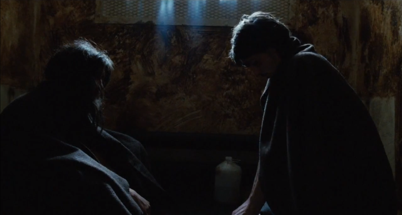 The moral of the story is this: other people know how to talk, and some even know what’s to be done. But the person who can act is a rare one, and Bobby Sands is such a man. By now McQueen has cut from his long take, and it’s the right choice to place the camera just underneath Bobby Sands, the man who we still must look up to, the one who gets to choose because he can act.