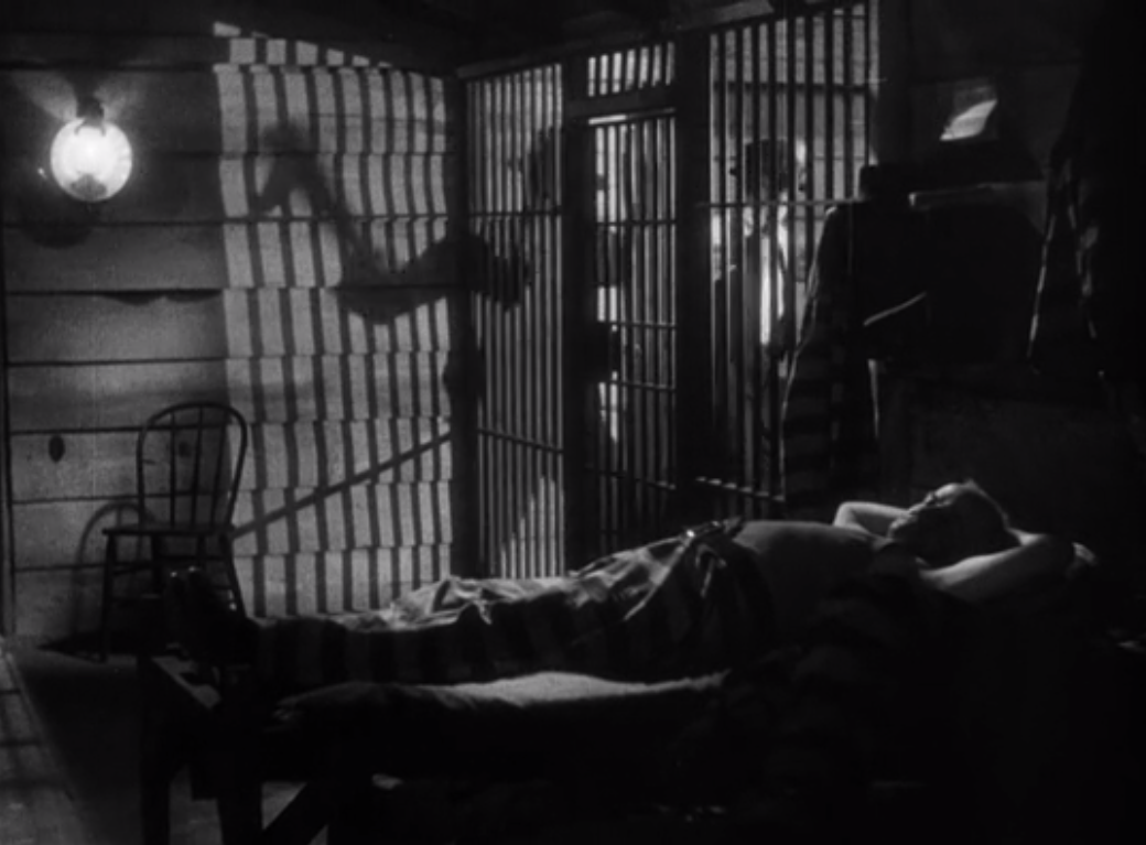 This movie is about the sheer brutality of the chain gang. It’s about the inhumanity of guards who turn their new men into convicts by letting them be shamed or injured into compliance. It’s about the beatings that they undergo, which LeRoy makes more horrible and indelible by giving us the whipping via shadows. It’s about the scene where we see all of these men banging rocks into dust, the mimesis of what the overseers do to them. It’s about the fact that this must one of the only integrated groups in the South during the time it’s set, the only place where white men are considered as worthless and venal as black men. When James figures out that he can wriggle his way out of the chains around his feet to freedom (with some help from one of the black convicts wielding the hammer), he chooses to go for that opportunity; watching him slip out of one with relative ease before struggling frantically with the other is almost unbearably tense, even if we know that he’ll succeed to become that titular fugitive; the scene knows that our sympathy for him outweighs our logic, and it has everything to do with a brilliant Muni performance. By then, he is still canny, but we can see the fear in his face, the rapid movements of his hands serving the dual purpose of freeing himself from bondage and simultaneously implicating his well-deserved panic.