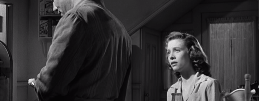 Let’s begin with the one that doesn’t belong. Mildred Pierce, to the best of my knowledge, contains no references to the war. No one’s coming home from the military. It gets up to 1943 or 1944, well short of the end of the conflict, and had it been released about three and a half weeks earlier I wouldn’t include it at all, as one of my rules was to exclude movies which were released before the end of the war. So I agree that it’s wrong to think of Mildred Pierce as a genuine homecoming movie, but it also sets the scene for one of the fundamental questions of the movies in this genre, which is: what are the men good for if the women seem to be doing just fine on their own? Mildred Pierce does not, for the reasons laid out above, answer that question completely, but it does at least give us a sense of what the men are around to do. They hunt. Specifically, they hunt women. Mildred (Joan Crawford) begins the movie with a husband, Bert (Bruce Bennett), who she tells to “pack up” very quickly. It turns out that he’s on the verge of running off with his secretary already; Bert might not be so good at business, and he might not demand the respect of other men, as his partner Wally Fay (Jack Carson) makes perfectly clear, but there’s no doubt that Bert has taken his role as a sort of hunter seriously. He pulls away from the dogfight, and it is no sooner that he’s gone then Wally steps in. Wally comes to the house late one night. Mildred’s in her bathrobe. Wally is all hands, promising that some things (Bruce never kept soda for the scotch around, Mildred doesn’t drink, and so on) are going to change once he marries her. This is what that conversation towards the top of Double Indemnity would sound like if Barbara Stanwyck weren’t into it, too, and Mildred has to work to get Wally out of the house. On the other hand, she falls for the card, Monte Beragon (Zachary Scott), at speed. His routine is more refined than Wally’s. Wally comes to Mildred in her home she’s shared with the husband she’s divorcing, and basically chases her through the house. Monte gets Mildred to a beach house and in the evening, backs her up against a fire and whispers sweet nothings. Kisses ensue for Monte, whereas Wally was handed his hat and sent on his horny way. Mildred doesn’t have quite as many suitors as Penelope, nor is she as circumspect, but certainly the first half of the movie revolves around who she will or won’t choose. There’s a message there, and it isn’t necessarily that Joan Crawford has kept her looks into her (gasp!) late thirties. It’s about the implication that a woman who has divorced a husband, even a husband who is as empirically as lowdown as Bert, would necessarily be open to marrying someone else as quickly as possible. Security is the name of the game, and Mildred, who appears to have learned very little either from dime novels or her AP Euro class, cannot tell the difference between someone with title and without money and vice versa. In one scene, her elder daughter Veda (Ann Blyth) all but commands her mother to marry Wally, even though she doesn’t love him.