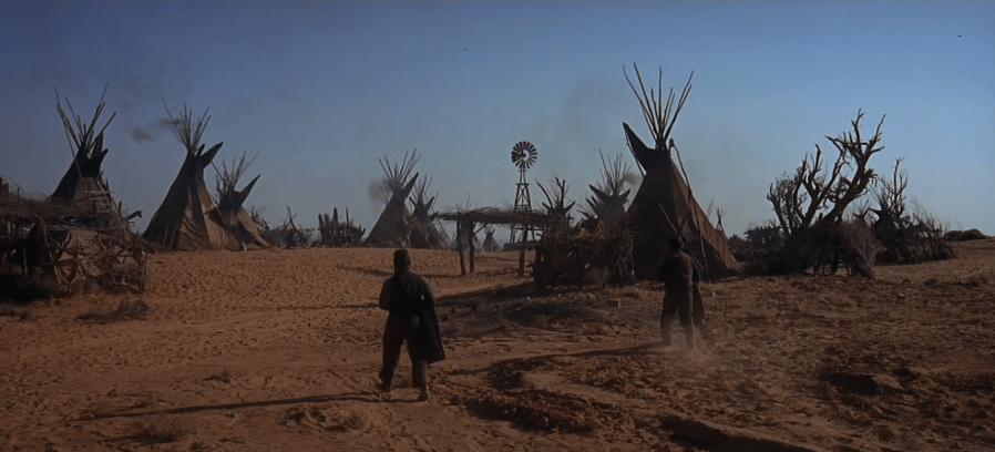 If Cheyenne Autumn works best as a rebuke to white supremacy, then the scenes where white people do jokes are less successful at maintaining that rebuke. The Texans who wander into Dodge City after having murdered an Indian just for sport have already had their scene, really; the worst of them decided to scalp the one he killed and throws it around for show. Watching him get knocked over the head with a mallet while Wyatt Earp carves the bullet he shot into the malcontent’s foot out of it is fine, I guess, but the rebuke has already happened. “Only an Indian would do something as gross and creepy as scalping.” No: a white man scalps an Indian for sport. “Only an Indian would get stinking drunk when the stake are high.” No: Wessels (Karl Malden) gets sloshed on the night that everything comes to a head at Fort Robinson, and his wide-eyed, silent look of horror is one of the movie’s most memorable moments. “Only an Indian would torture women and children.” No: the order to send the Cheyenne who have surrendered to military custody at Fort Robinson back to their reservation through a harsh winter is something close to genocidal. Ford’s aim is to reject stereotypes where he can, and more than that show that white people are hardly so holy themselves. In the years after World War II, Ford made a number of movies about the cavalry fighting the Indians, and while the army was not always right in taking on the Indians, it was clear that we were meant to identify with one side of that battle. In Cheyenne Autumn, there are multiple skirmishes between the two sides, and the movie never asks for us to pull for the cavalry. (Being expected to root for the cavalry rather than the Native Americans in a movie like Winchester ’73 is part of what makes that, and its ilk, a tough sit anymore.) One of the officers, Scott (Patrick Wayne), who lost his family to Indians, has it out to kill as many as he can. He leads a cavalry charge that the Cheyenne know will come, and are perfectly ready for the assault. They’ve sent out a group with torches to set fire to the sagebrush, but strategically: the only open corridor available to the cavalry is the one the Cheyenne have purposely left that way, and they train their fire on that spot. The men firing their repeaters at the soldiers are fighting to be left alone, to protect their nearby families, to go home. There’s no choice but to pull for them.