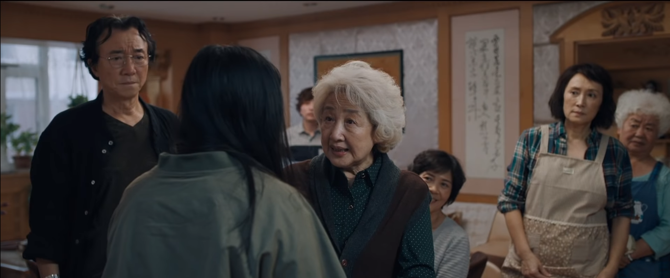 I think what appeals to me second-most about The Farewell is the way that has a very traditional sitcom setup. How many times have we turned on the TV and seen the plot about “Don’t tell X about Y, because X can’t keep a secret,” and then X finds out, naturally, and then everyone hustles to stop X from blurting it out? What appeals to me most about the movie is that Billi, filling the role of X, never does blurt it out. The family is terrified that their most Americanized, most emotional member will be the one who lets Nai Nai in on the secret of her terminal illness, but for whatever reason Billi manages to hold it together better than some of those concerned family members. Her cousin and her uncle both have tearful breakdowns at the wedding that’s been cobbled together for the benefit of getting everyone in the same place to see Nai Nai one more time, but Billi spends that wedding doing karaoke and looking on at her weeping relatives with something between awe and horror. Getting caught is funny (I guess, can decades of network television be wrong), but forbearing is actually interesting, and there is so much effort given by these characters to hold on as tight as possible to a secret that is desperate to wriggle its way out of their grasp. All in all, Billi’s attempts to keep it in are about as graceful as anybody else’s, although she does get close in one of the movie’s genuinely funny scenes in which she has it out in English with Nai Nai’s doctor while Nai Nai, who does not know English, tries to set up her granddaughter with the guy she’s debating. This is not a movie which is particularly partisan, I wouldn’t say, but the relative equanimity that Billi brings to the morbid proceedings is based on how willing she is to struggle with the decision of whether or not Nai Nai ought to be told she’s going to die. The movie sets this up as an East versus West kind of thing, but part of this is also temperamental. Billi, by temperament, is more individualistic than her extended family or her own parents. Hao Hao, her cousin, has been living in Japan like Billi has been living in the United States, and yet he seems willing to get married in haste in order to abide by some tradition that he, presumably, does not live by. Billi’s constant inquiry, frequent pushing, and refusal to take “Shut up and mourn” as the last word means that when she does make her goodbye (which the movie does kind of hamstring a smidge by including footage of Wang’s own still-living grandmother), she can do so on her own terms without having given into despair, like her uncle, or bitterness, like her mother.
