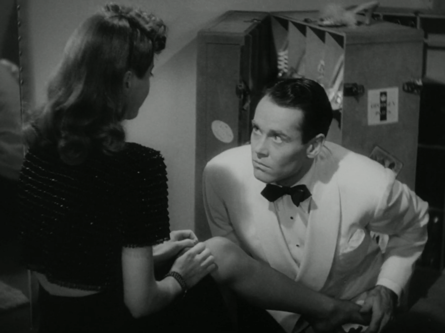 One assumes that the phrase “head over heels” used to be the much more evocative “heels over head,” seeing as the one we’re using now describes most of us who are not circus performers. Not every strange pratfall which strikes Charlie Pike (Fonda) has him in that interesting heels over head iteration. Jean, or at that moment “Eve” (Stanwyck). shows up at a dinner party that his family hosts. That puts him through a couple tuxedos because people are spilling stuff on him like he’s on a ’90s Nickelodeon program. His first interaction with Jean, in fact, is in that genre, albeit with a mythological twist. She’s aboard the ocean liner when Charlie’s little boat intercepts it, and as he boards, she expertly drops her partially eaten apple right on top of his pith helmet from a few decks up.