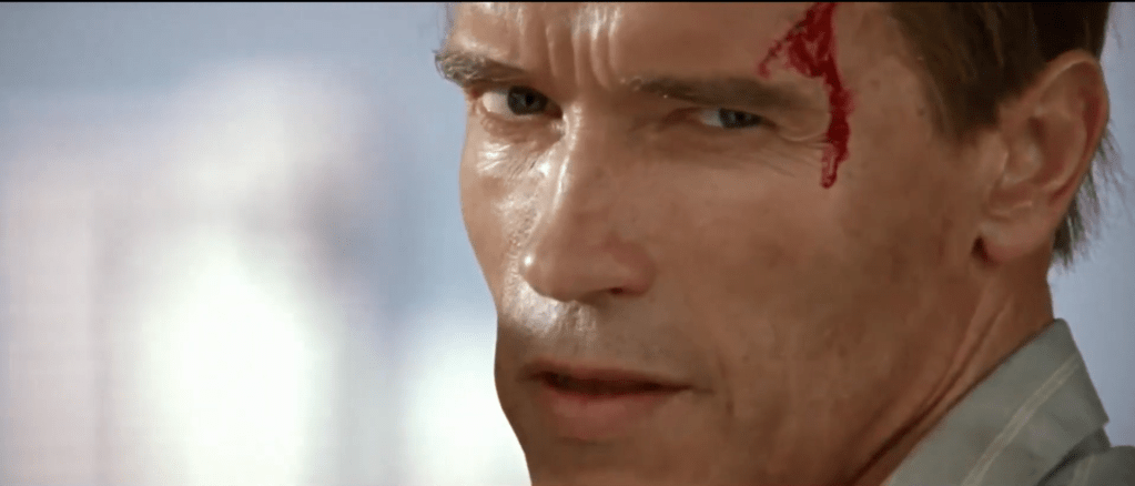 That sense of comedy and irony have always underpinned Schwarzenegger, even if the movies in the Terminator franchise or Predator are the films that we’re most likely to return to for pure action satisfaction. It’s there when he turns out to be a sleeper agent of sorts for Total Recall; no duh the guy can yeet Michael Ironside’s army of redshirts, and yet it’s meant to be a surprise. The Running Man has a similar kind of weirdness, given that the hero in that story is not written as an ubermensch. And then there’s the slapstick strangeness that Schwarzenegger returned to over and over again once he decided he was less interested in playing the action hero: the self-referential The Last Action Hero, and of course Kindergarten Cop, Twins, and Junior. Arnold Schwarzenegger has always wanted to be something like a real actor, someone with range, and that’s what a picture like True Lies is for. Back in his comfort zone with James Cameron, playing a kind of bastard James Bond, this one has everything. Ahnold diving in frozen water and stripping to a tuxedo. Ahnold daydreaming about laying Bill Paxton low with a single blow. Ahnold interrogating his wife about her affair using government property. Ahnold manipulating his wife into a striptease. Ahnold fighting the terrorists with his family. Ahnold on an AV-8B, telling the terrorist he’s about to fire off the plane via missile that “You’re fired.” Such heinous, incredible strangeness could only belong to Arnold Schwarzenegger, one of our last action heroes who could launch a new action franchise by being all the IP we needed.