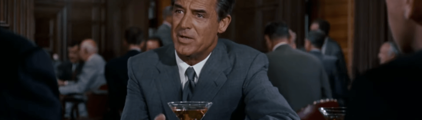 A Cary Grant comedy threatens to give him a hard time. A Cary Grant thriller threatens to give him a hard time and then shoot him afterwards. In both Mr. Blandings and North by Northwest, he plays one of the Mad Men; a last-second assist helps Jim Blandings save his job at the end of the movie, while a last-second assist helps Roger Thornhill save his life. The withering, self-deprecating humor is emphatically there in the thriller. Once he’s already evinced some not inconsiderable talent at not getting murdered, the feds ask him to volunteer to get back in there and do his part to expose the scam. He is not excited about the plan. He has responsibilities, he tells “the Professor.” “I’ve got a job, a secretary, a mother, two ex-wives, and several bartenders that depend upon me,” Grant tells Leo G. Carroll, “and I don’t intend to disappoint them all by getting myself slightly killed.” It’s there in the way that he totally upends an auction in the successful effort of getting himself arrested; my personal favorite part is when he gets the auctioneer on tilt, lulls him into a false sense of security with a genuine bid on an item, and then almost immediately starts screwing around again. He even does a pretty good two-handed conversation all by himself. No, I haven’t been drinking, he tells his mother on the phone. No, two men made me drink a whole bottle of bourbon. No, they didn’t give me a chaser!