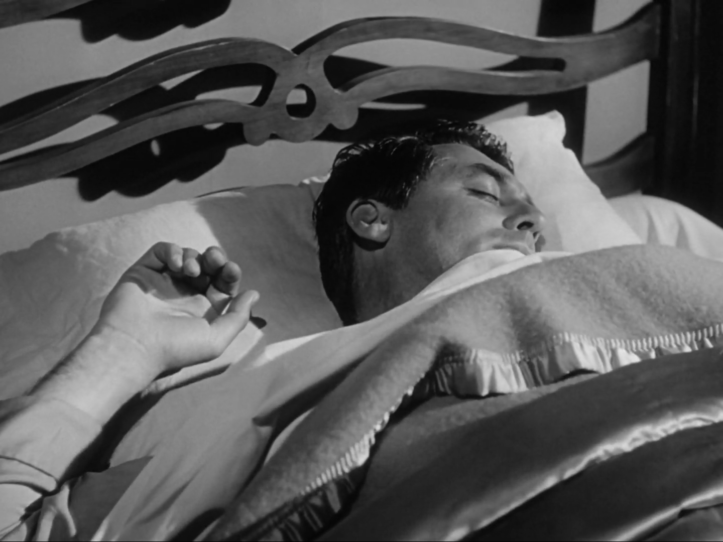 As a romancer, Grant was adept at multiple kinds of making love. In the early ’30s, he does a pretty good job of standing still while Mae West entwines her come-ons around him. The negging, browbeating approach that makes for funnier comedy if not for solider marriages still comes off as reasonably charming in the early ’30s and ’40s; the domineering Grant is still a sexy guy, and we see him paired off with Katharine Hepburn, Jean Arthur, Rosalind Russell, and Irene Dunne giving variations of this strong-willed man with adequately soft hands. Once again, it’s with Hitchcock that we see Grant in full flower as a lover. In North by Northwest, a film which takes a little break in the middle to hear an awful lot of pillow talk between Grant and Eva Marie Saint, it’s just one form of sweating it out replacing it another. I never do remember the full intensity of those sequences until I watch the film again, but suffice it to say they are steamy with one another. And then there’s Notorious, a picture which proves that lying about what you want your girlfriend to do for the government is the most fun a guy can have without taking his clothes off. The romance between Grant’s Devlin and Bergman’s Alicia is sudden, but the kisses and nuzzles that they share are anything but. It’s not sloppy between them. The lights do not highlight stray beads of saliva left by their lips on one another, but all that does, short of making a ghostly sort of tickle on our own faces in the dark, is whet our palate for more. At the end of the picture, Grant symbolically carries Bergman through the doorway, going the opposite direction. Maybe he’ll introduce you to the joys of the flesh a little earlier than he’s supposed to, but Cary Grant will always make an honest woman out of his partner.
