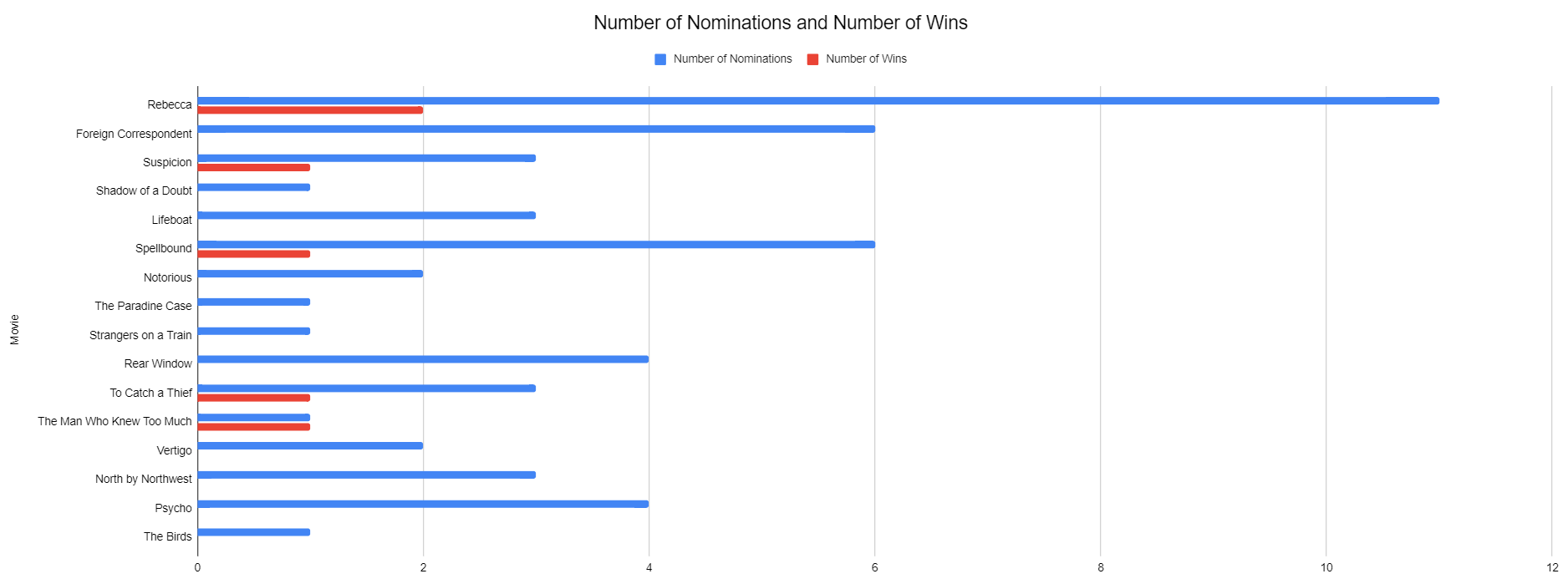 Like frequent collaborator Cary Grant, Alfred Hitchcock never won a competitive Oscar. And as is the case for Grant in Best Actor, the overlooking of Hitchcock’s entire competitive career in Best Director is widely considered that award’s greatest blind spot. Given that the only movie of his to win Best Picture, Rebecca, is in this tier, let’s play the charts game to commemorate this weird and wonderful factoid about the inability of Hollywood to recognize the best among them. First, his movies’ record: