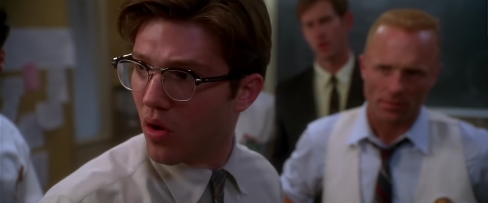 The last great movie to glory in bureaucracy is probably Shin Godzilla; the one before that is Apollo 13, a movie where they stick three genuine movie stars in a box for a couple hours and then let the character actors, real or glorified, run around like maniacs on the ground and do the work. Loren Dean is in focus in this shot, but you can still see Ed Harris, a little blurry, behind him; the concern in his face is evident, but it’s a concern which comes from listening, from processing information. In this moment, everyone in the room has heard the same thing. They heard “Houston, we have a problem.” They heard Kranz translate “wicked shimmies” as a problem with the craft and not a problem with instrumentation. They heard that gas was venting. In short, most of these men in the room believe that Lovell, Swigert, and Haise are dead men who just happen to be breathing for a little while longer, and that’s the reason they’re acting the way they are. They’re deflecting blame already, in the case of the guys from Grumman who built the lunar module. They’re acting like they should just shoot the astronauts back with a burn from a heavily damaged command module. And most of all they’re acting like it’s business as usual except the mission is over. It’s in this moment when John Aaron commandeers the room, and Kranz, who understands that what Aaron has to say is exceedingly valuable, yields the floor to a subordinate who can “work the problem” better than himself. The heroes are anonymous to anyone who’s not a total nerd, but Apollo 13 gives them a spotlight.
