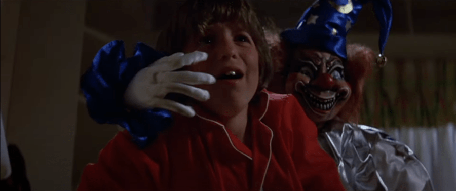 The moment where that clown doll actually reaches out and grabs Robbie takes less than a second. The buildup to it takes, genuinely, a couple minutes. But the actual reaching out and grabbing of Robbie’s face and then dragging him down by his throat takes less than a second of sheer, slightly unfocused film to hit. They did a number on that clown. He is a scary son of a gun years before Stephen King published It. They’ve nailed the burned out visage, the eyes that are too bright and the lips that are too dark, the nose that has retained its cheerful redness and the hands that are simply too huge for him proportionally. Even the bright blue and silver of his pajamas manages to make him more sinister; they shine where everything else, excepting that one glowing eye, is basically a dark matte. A sixty-foot face like the clown’s, which has not been under the bed as we expected but was waiting like the world’s most made up cockroach to wriggle its limbs on top of this kid, is the one moment of true awe that we get in Poltergeist that matches Hooper’s earlier classic The Texas Chain Saw Massacre. This is a jump scare—don’t listen to people who decry them, for they rarely love horror movies anyway—a jump scare written in lightning. In a movie where the most famous image turns a girl’s face away from the camera and puts her in shadow in front of a shimmering television, the scariest moment purposefully gives us a face to key in on.