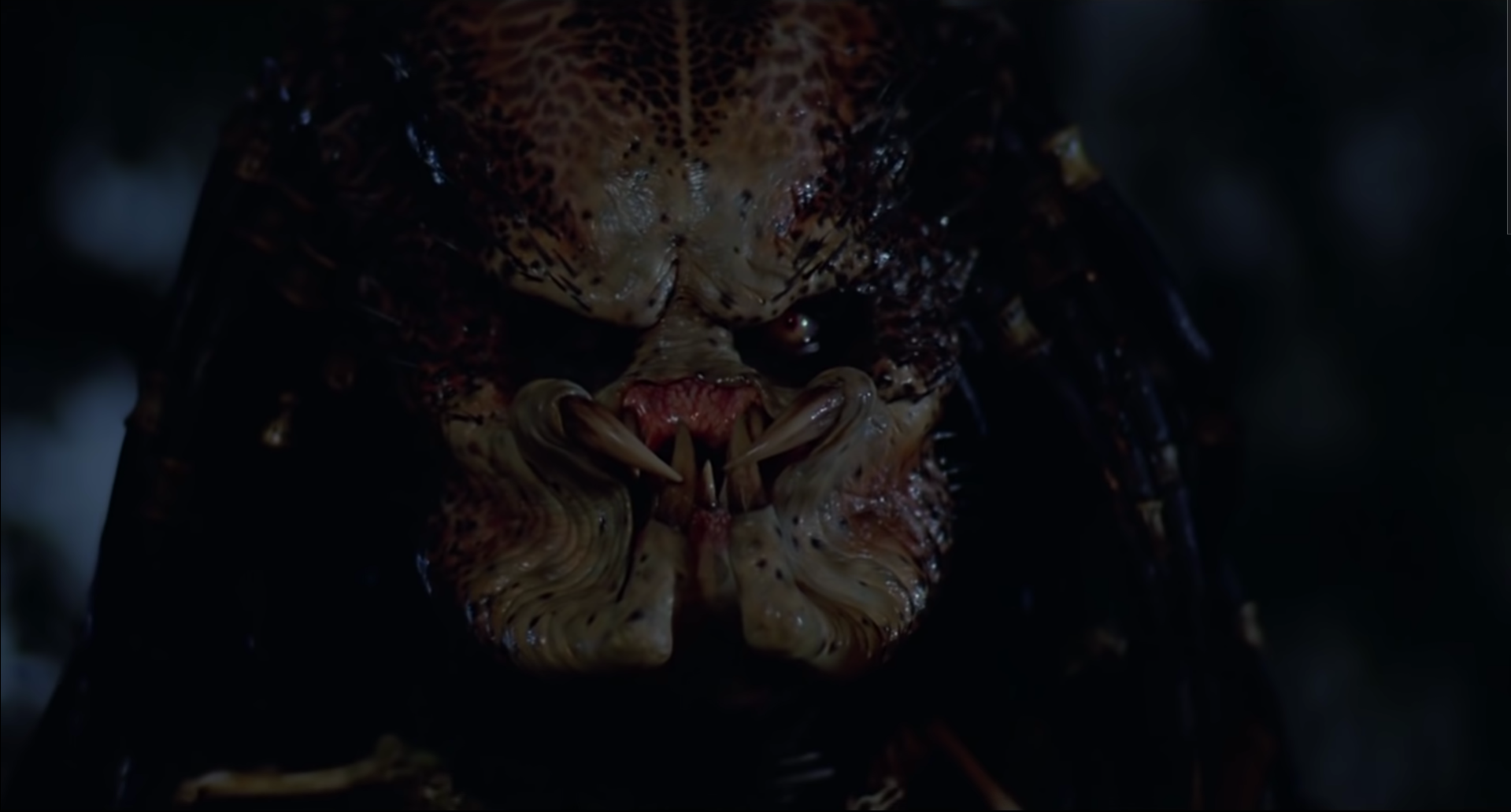 Predator was released a few years before I was born, and in the interim there have been (counts on fingers) five new installments with a six supposed to come out next year. In other words, even for someone who was basically indifferent to ’80s and ’90s action and generally avoided horror for the first twenty-five years of his life, I couldn’t not know what the Predator looks like. That doesn’t mean that the scene late in this film where the alien takes off his helmet, lets it drop into the water, and shows Arnold Schwarzenegger what’s underneath doesn’t hit like a blow to the spine. Dutch is, on one hand, not impressed. “You’re one ugly motherfucker,” he says to this creature, which seems to have evolved for eating prey in a way I can’t quite understand myself. He’s not wrong about this. The skin of this creature is made of contrasting deep reds and snot greens, like the Play-Doh versions of Freddie Krueger’s sweater. The eyes are set too deep, the muzzle is too wide, the teeth long and yellow. But looking back at this scene I wanted to focus especially on Schwarzenegger’s face as well. When we get those reaction shots, it’s not fear that we see in Arnold’s eyes, but a look that suggests that this guy who has seen it all, who has even fought with this monster from another world, has absolutely no idea what to do with his opponent.