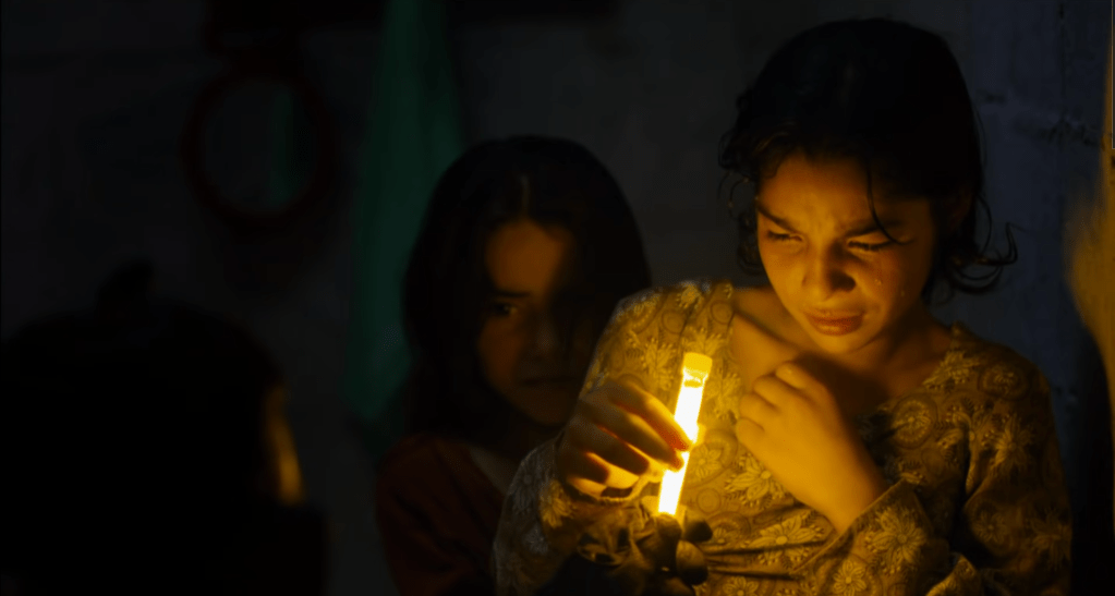 I don’t think I buy the “Zero Dark Thirty is pro-torture” line, at least not firmly. The film finds Maya’s rough but typically hands-off treatment of prisoners to be generally more effective than Dan’s Abu Ghraib approach. One can argue about whether she gets to be the good cop with Ammar because Dan is the bad cop—it’s an argument worth having—but I don’t think the movie suggests we should be waterboarding more of these guys. There’s too much sympathy for Ammar when he comes up, vomiting water and mucus. Yet I don’t think Zero Dark Thirty finds this system tragic. It might be sad when Ammar starts yelling days of the week at random as Dan yells for the date of the next terrorist attack, but the problem with the inertia of the torture machine in Zero Dark Thirty is that it’s inefficient, not that it’s unethical. Even the hushed reaction to the dead body of Osama bin Laden, face largely hidden from the camera—dollars to doughnuts it’s because they know they can’t get someone who looks that much like him and don’t want to break the spell in those dramatic moments—is because of that sense of finality as opposed to a possibility of injustice. Years of Maya’s hard work culminate in a major, tripartite American triumph: kill Osama bin Laden, avenge the dead of 9/11, and declare a victory. What no one ever seems to wonder is why this mission is out to kill bin Laden as opposed to taking him alive. Lenihan (Pratt) has a team in charge of clearing the hard drives and papers from bin Laden’s basement office, calling it a “gold mine,” and lamenting that he’s only got four minutes instead of the ten he’d need at a minimum to get the goods. Wouldn’t a living bin Laden have been more useful than undisturbed hours to clear that room? All the same, the mission is to kill, not capture. It’s a goal that no one ever questions. Vigilantism is one of the few unambiguous goods in this film. It is wept over by sad children herded together in a room, sobbing occasionally. It’s a personal tragedy that these kids lost a father or an adult friend and will need therapy later on or whatever else we must think as we see them in pajamas and midnight blues. It’s an institutional triumph. I don’t think that’s moral ambiguity so much as it is glorified Sorkinist sophistry. “What kind of day has it been if there are crying children who witnessed the extrajudicial of the world’s most wanted terrorist?”