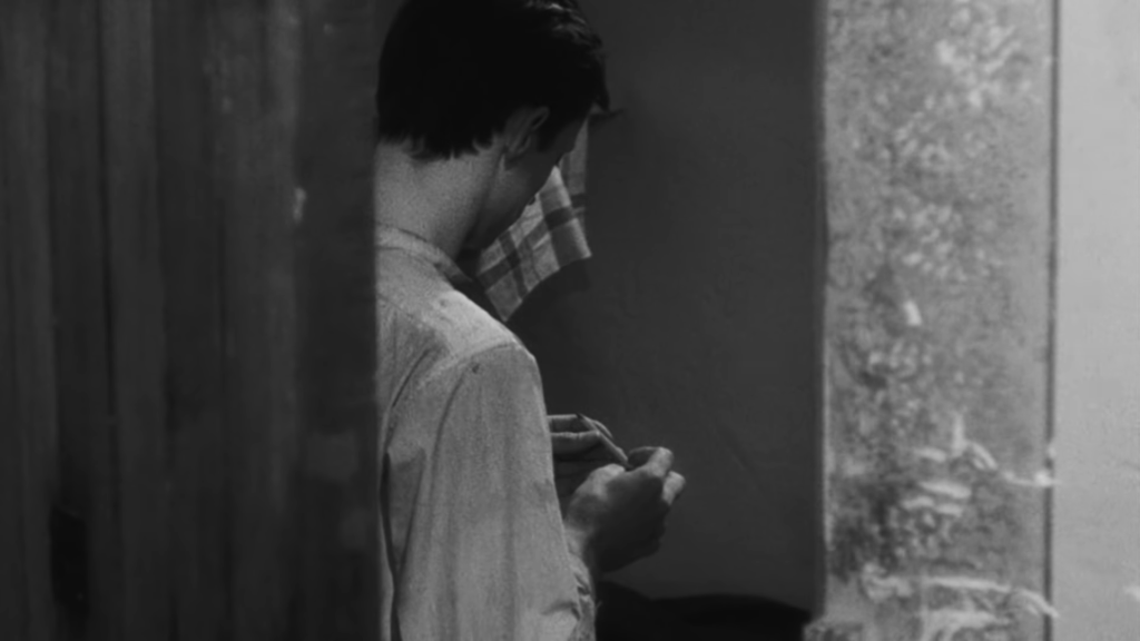 I said earlier that there are not many movies which can be said to profess wisdom. Koyaanisqatsi is certainly one of them, and as tempted as I am to say that the work of Robert Bresson often strikes me as wise, I’m not sure that’s really the right word. The movies of Robert Bresson are about holiness more than they are about wisdom, and that is not at all the same thing. A Man Escaped, perhaps Bresson’s most accessible film this side of L’argent, is a film which strikes at an old concept. In an extreme situation, what extreme actions are allowed someone who is trying to live in the right? There are two moments, both late in the film, where Fontaine is given a choice: kill a man or spare his life. In both cases, Fontaine thinks hard about the decision, and Bresson lingers on him as he puzzles it out. In the first case, Fontaine gets a young cellmate named Jost on the night that he is going to try to escape Montluc Prison; he cannot delay, for he knows that he is up for execution and to wait a day longer is to commit a passive kind of suicide. He does not trust Jost, who is not much more than a boy but certainly old enough to be able to know what favors he might gain from the German guards if he were to foil an escape attempt. Yet he does not want to kill him, and so takes Jost along with him when there was only ever one person who was supposed to take his painstakingly made rope over the walls.