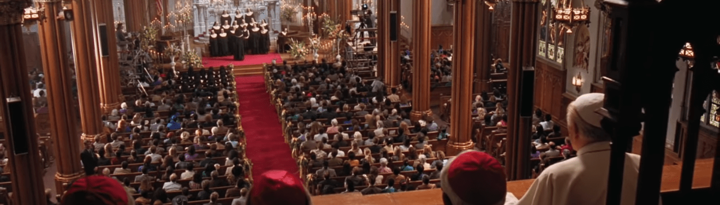 Let’s say you were thirty years old in 1992 when Sister Act opened. First of all, you are unironically my target audience. More relevantly, a thirty-year-old in 1992 brought up Catholic would have no real memory of a pre-Vatican II world. It might only be a slight exaggeration to say that the implementation of the ideals of Vatican II was the most important thing to happen to Christianity since Martin Luther decided to do a home edit for Roman Catholicism. There had always been at least a little humor in filmic nuns, a problem as insoluble as Maria, but Sister Act fairly blew the roof off with Whoopi Goldberg’s lounge singer Deloris masquerading as “Sister Mary Clarence.” It’s not merely that Whoopi Goldberg is bopping around the stage with Wendy Makkena and Kathy Najima, but that this is Catholicism according to the hopes of Pope John XXIII and Larry Norman alike. Sister Act is funny because of Goldberg, but there’s nothing kooky about this performance of “Salve Regina” with handclaps and vocal runs. This is contemporaneous with Amy Grant, Jars of Clay, Steven Curtis Chapman, Michael W. Smith. (Those of you thinking about the earlier crossover success of gospel performers like Mahalia Jackson and the Edwin Hawkins Singers as precursors are being really nice to contemporary Christian.) The rise of a type of Christian music that could sound like pop if you didn’t listen to the lyrics is essential to so much of the marketing of today’s Christianity. Deloris needs a project and the people at Hillsong are (presumably) true believers. But they’re both aiming their performance at the kids who look into the church with quizzical looks on their faces.