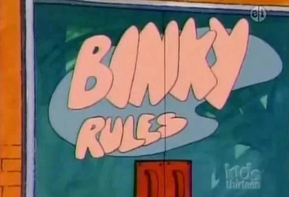It’s all enjoyable enough, but Buster’s fancy and Fern’s logic both fail in the end. The unnamed song turns out to be a culprit with a suspiciously coincidental name. “Binky Rules” is a statement not about the giant third-grader with hopes for himself on the pitch, but about the band with the hooky single and no comprehensible lyrics. A guy from the radio station has instructed a team to drum up some interest in Binky by putting up esoteric legends around town, notes that they “went a little too far,” and they come around to scrub the graffiti off the school walls while the DJ passes out CDs. It’s Buster and Fern who make the discovery that Binky is a band, and in the spirit of a warmhearted children’s television program, the two of them crack the case together and participate in dancing to the inordinately catchy song next to one another.