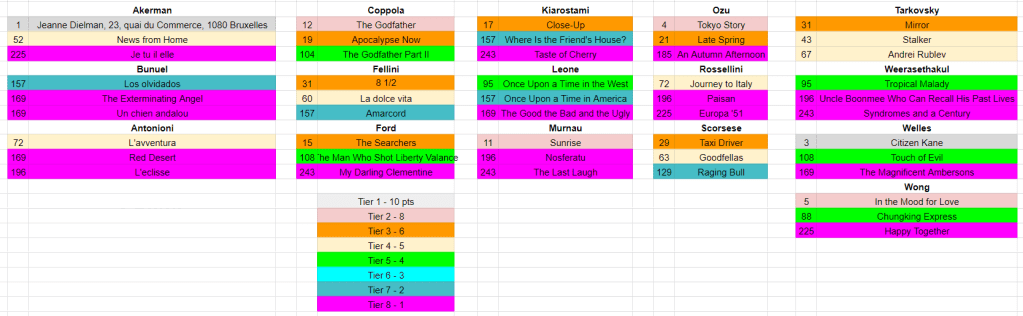 | 1 / First-Place Movies | 1-3 / ex. Jeanne Dielman | 10 |
