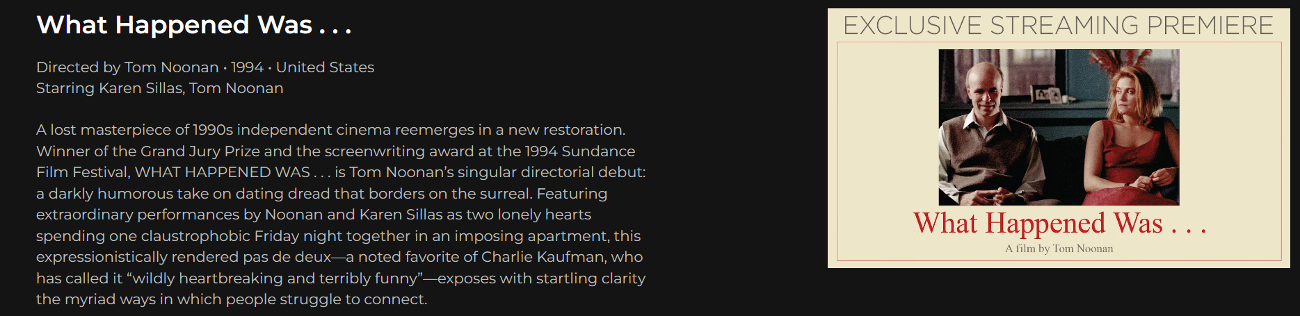 - What Happened Was… / 1994, dir. Tom Noonan