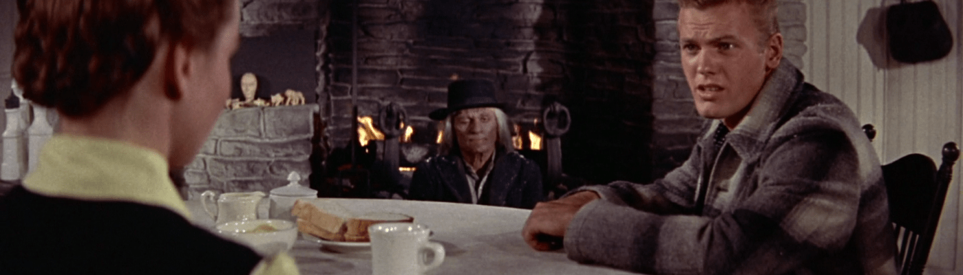The Jonathan Rosenbaum Top 100 list, the most notorious and delightful counter to the 1998 AFI Top 100, is a fascinating compilation. List seems wrong for it, really, not in the way that I talk about lists or the Internet generally talk about lists. It’s not ordered any way but alphabetically, and the whole point is not to rank so much as highlight. Rosenbaum was right about movies which have since been canonized in ways going well beyond his own work: Wanda, for example, is a top-50 film in the new Sight and Sound poll. I’ve been working my way through that list slowly and a little randomly, and I’m currently about seventy percent of the way through. I was turned on to Track of the Cat via Rosenbaum, and while I like William A. Wellman and I like Robert Mitchum even more, I don’t know that this would have made my longlist without Rosenbaum. I’m grateful. This is a magnificent film, beautiful in vistas and palette, remaining largely in grayscales with huge swaths of black and white, only occasionally highlighting pink blood in the snow or the unmistakable carmine of Mitchum’s coat. The line on Track of the Cat is “Sirk western,” but it doesn’t strike me as a particularly Sirkian movie; it’s just a ’50s film with family drama. Track of the Cat contains the barely constrained mania of Johnny Guitar instead, the black-and-white-and-red reverse of the yellow and ochre Trucolor of Ray’s own unusual western from the same year. Beulah Bondi is unbelievable in this movie, even for someone who adores her in so many other films. Her favorite swear word is “blasphemous,” a word she tosses at people who act in ways she feels are disrespectful to her more than to God Almighty, who has a swift temper but has also proven some capacity for taking an insult without scorching the earth below. She has the arrogant power of a terrible queen in some stretches, but after the death of one of her children, she sits in grief, even lying in the bed where the coffin has been for some hours. This movie singes, the kind of burn you feel on your fingertips, blistering up just enough that you can’t quite touch anything without shaking it off.