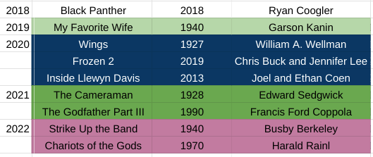 This one’s real late! A surprisingly busy schedule at work, the Oscars, and March Madness have all contributed. But it’s still really late!
