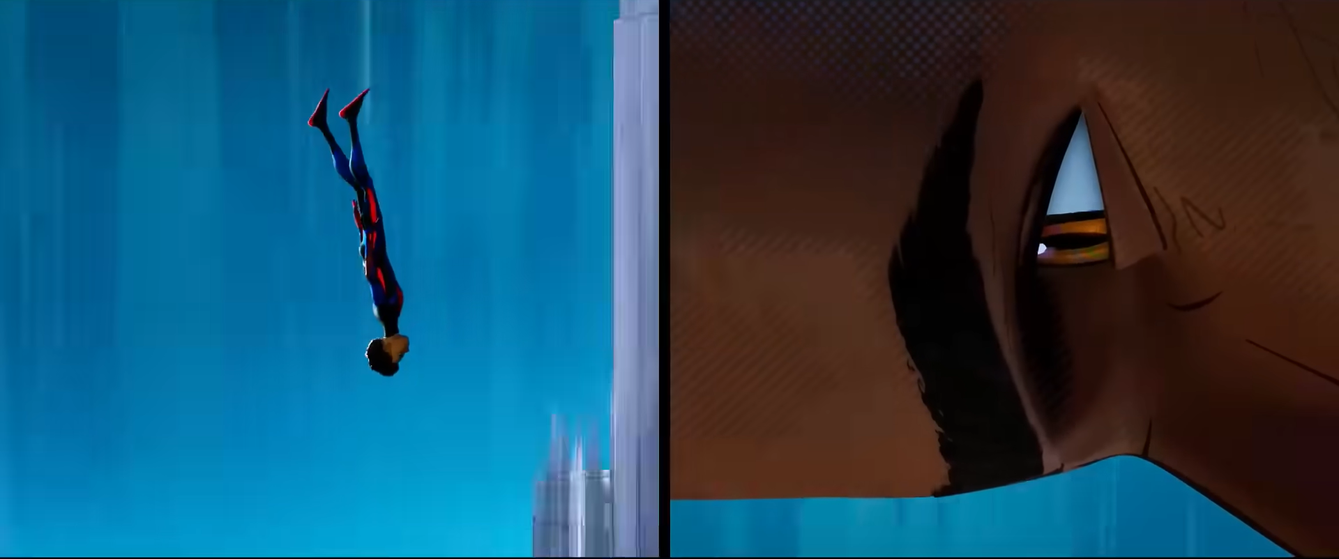 The animation styles of the Spider-Verse movies are dictated by Chris Miller and, more vocally and problematically, by Phil Lord, two of the producers and writers on those pictures. The Lord and Miller style, which was introduced to the superhero genre with The LEGO Movie, favors the dense frame, loading each cel with an astonishing amount of detail. Where the big screen tends to call attention to the rush-job VFX of your MCU tentpole, the big screen is the ally of the Spider-Verse films. It allows you to see just how much is going on, lets you marvel at the sheer amount of information you get, and because the style is fluid (the watercolor effects of Gwen’s backstory in Across the Spider-Verse against the choppy, geometrical finale of Into the Spider-Verse), the results can be hypnotic. It’s an animation style which breeds FOMO while you are in the theater watching it; you’re sure that you are missing something that’s been painstakingly included and it hurts a little to know you’re missing it. It’s the style which best suits the multiverse, which is its own kind of FOMO; there are so many versions of the story that you’ll never see, and so many items in the frame to rack up as you piece together the version which stands before you.