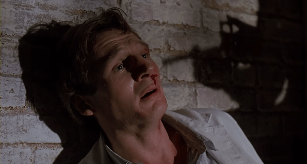 Westlake’s crime-fighting efforts lack the universality of your average superhero. There is no focus on crime or injustice outside of the injustice that has been done to him, which puts Westlake in conversation with Frank Castle and not that many other people. Death is not too high a price to pay for malefactors, although only very special individuals at very dramatic intervals of the movie receive dispatches at Westlake’s own hands. There is no expectation that after Westlake has gone through Durant and Strack he will move on to stymie the other white-collar criminals. Westlake is a man with just one job, and just one purpose, and it is really tough to put those kind of single-issue voters into the superhero electorate. The more violence he deals out, the more he begins to enjoy what he’s doing. The rhythms from The Invisible Man are tapped into, as the foul humor of a dangerous man yields to the mania of a murderous one. Our sympathies remain with Westlake throughout the movie, not least when he’s trying to reconnect with his girlfriend wearing his old face through as much sunlight as the synthetic skin can stand. However, this is the pity we grant to a vigilante, not the respect given a sigil, and so the line between superhero and Universal movie monster grows ever thinner throughout the movie. To avenge himself and his future, he must lean ever more into his superpower of creating these exact masks.